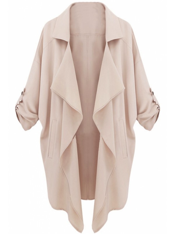 • Beige Long Sleeve Casual Loose Pockets Coat