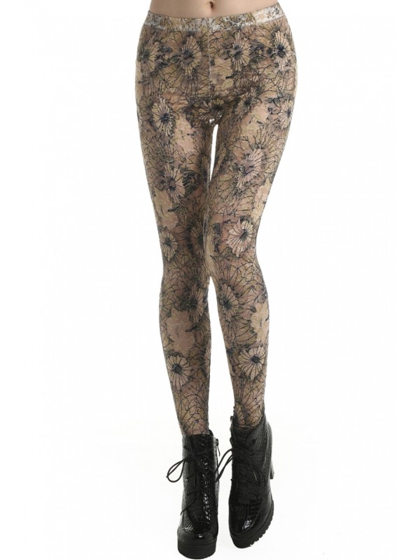 One Size: Waist:54cm Hip:68cm Thigh:34cm Length:97cm Description Leggings, featuring golden lotus flower print, oversize styling, hollow design, an elastic waist, a soft touch. Fabric Polyester. Washing Hand wash, separately from other clothes.