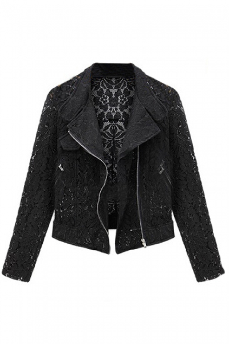 Hollowed Flower Details Black Lace Short Coat