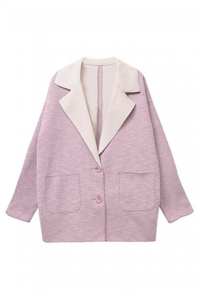 Lapel Color Block Loose Light-purple Coat