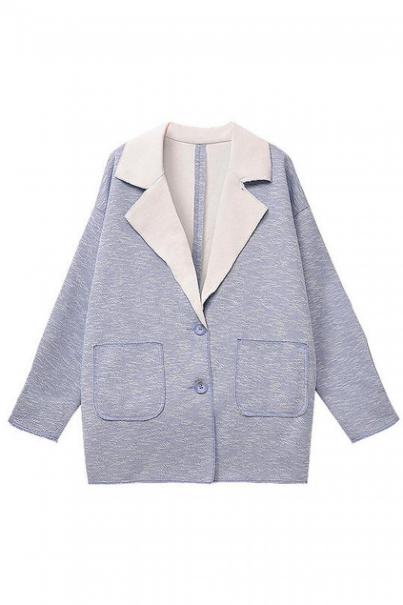 Lapel Color Block Loose Light-blue Coat