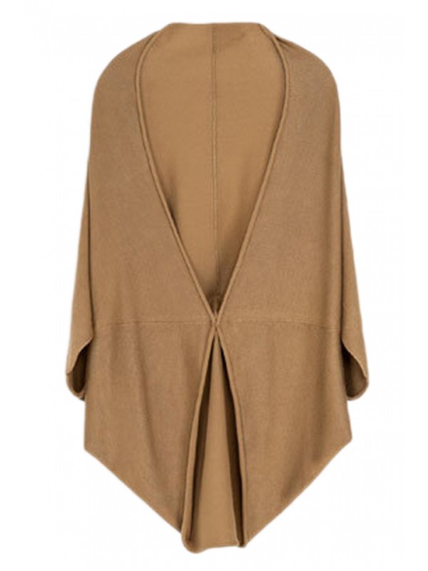 An overzied khaki coat, featuring opened front, cape styling, asymmetric hem, solid color, soft touch fabric. For a daytime look team it with some edgy ankle boots, black skinny pants and sleeveless shirt.