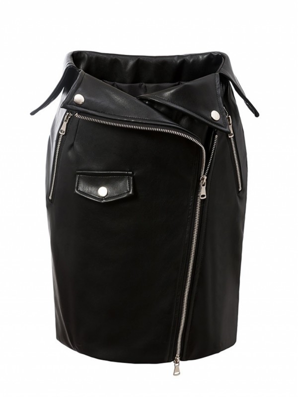 Black High Waist Foldover Asymmetric Zipper PU Pencil Skirt